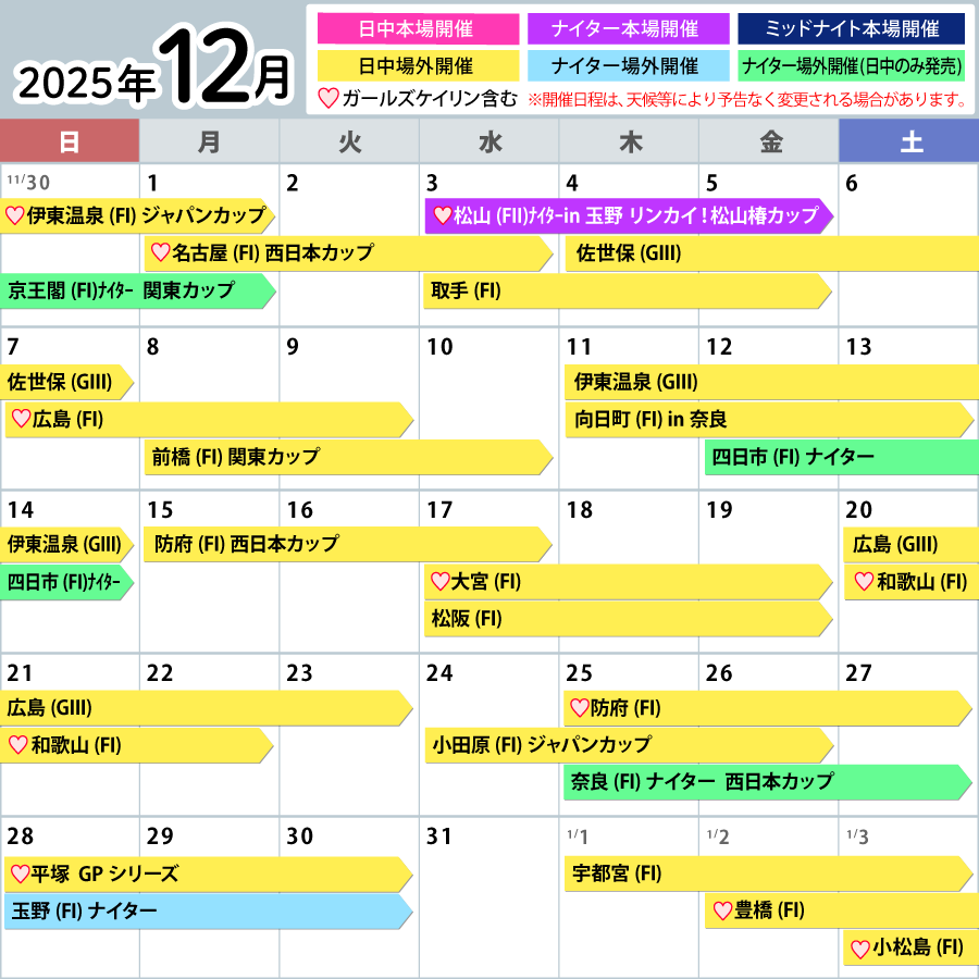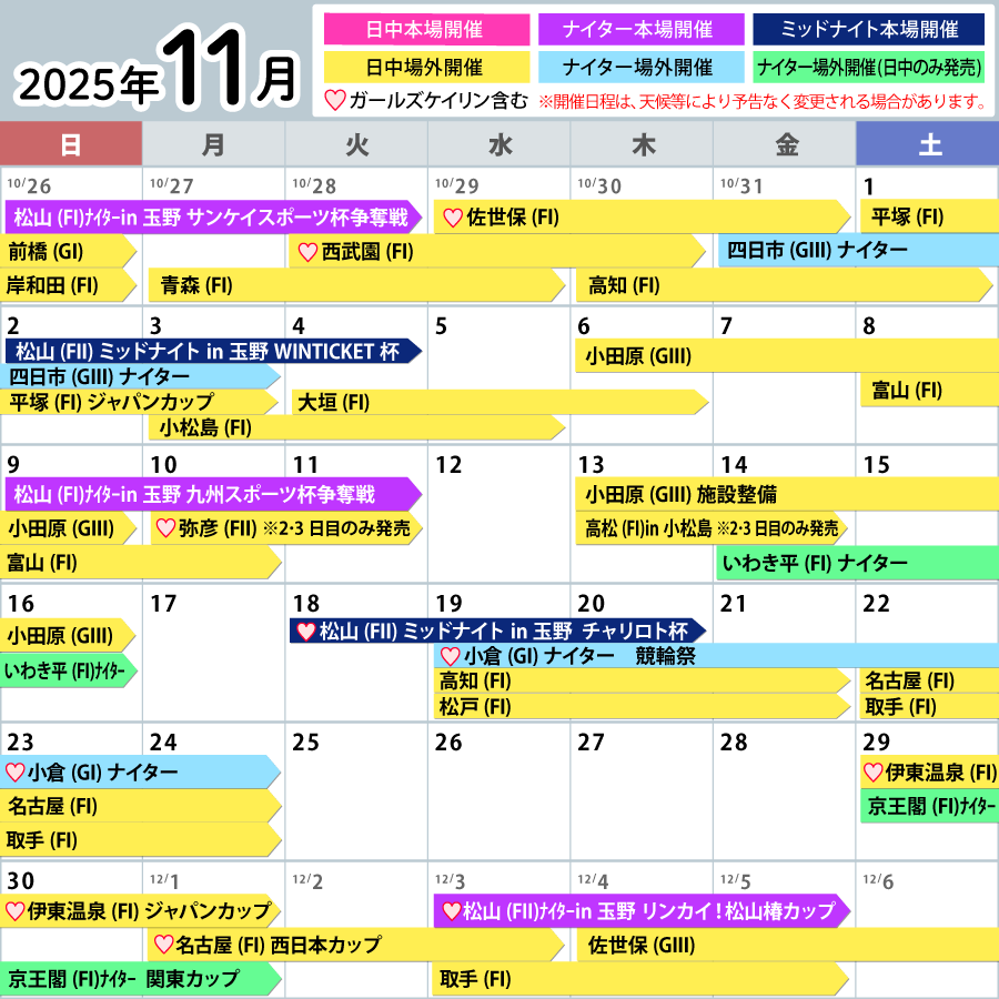 サテライト(こまつ・西予)を含めた下半期開催日程(2025年10月~2025年12月)はこちら