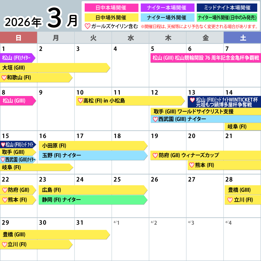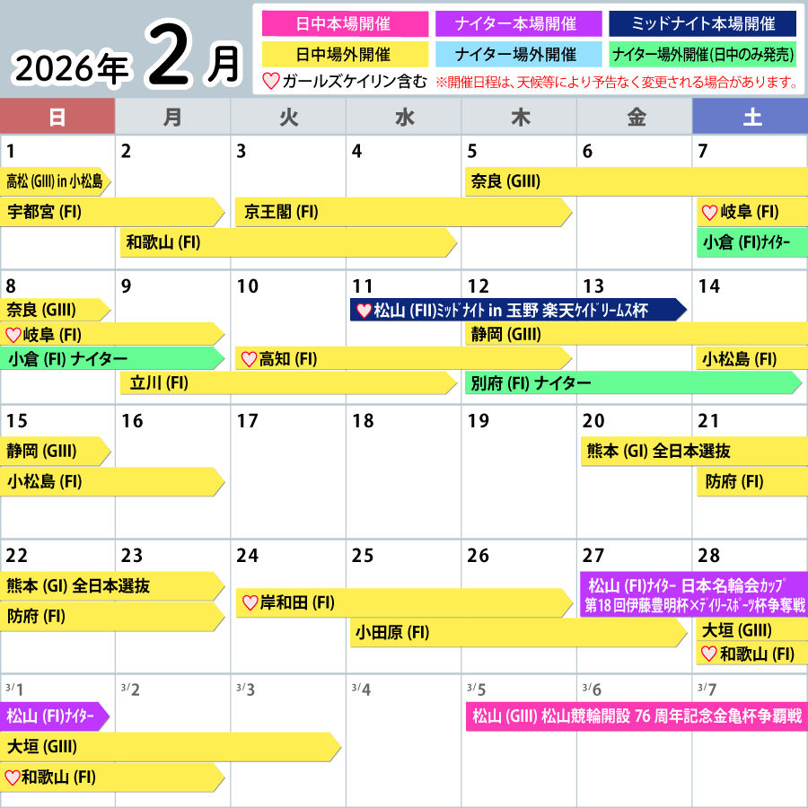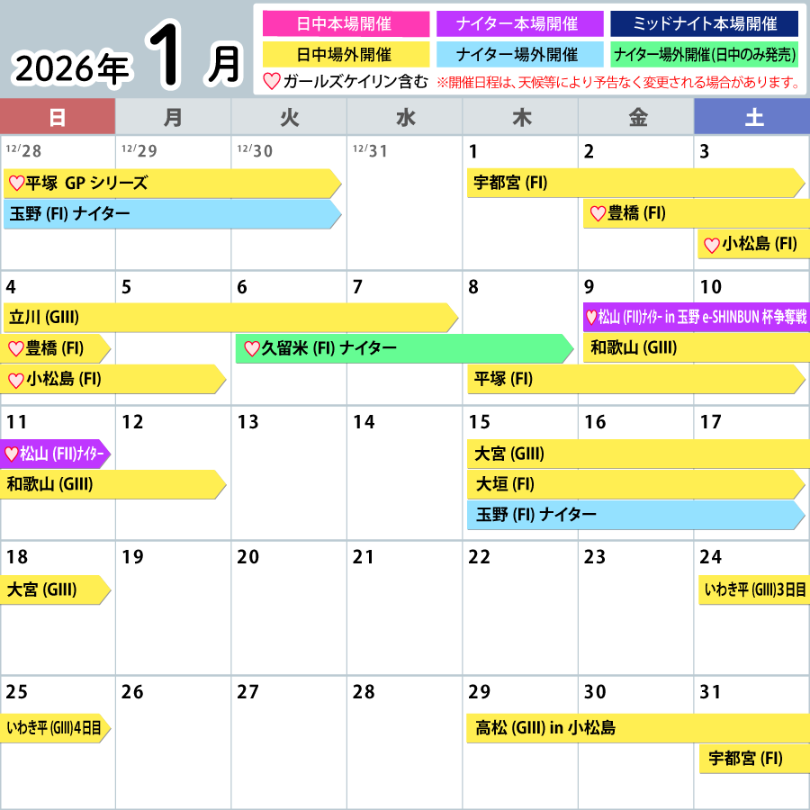 サテライト(こまつ・西予)を含めた下半期開催日程(2026年1月~2026年3月)はこちら