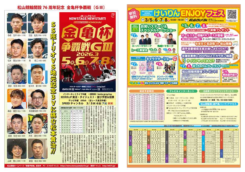 松山競輪開催期間中、スピードチャンネル内でお知らせいたします
