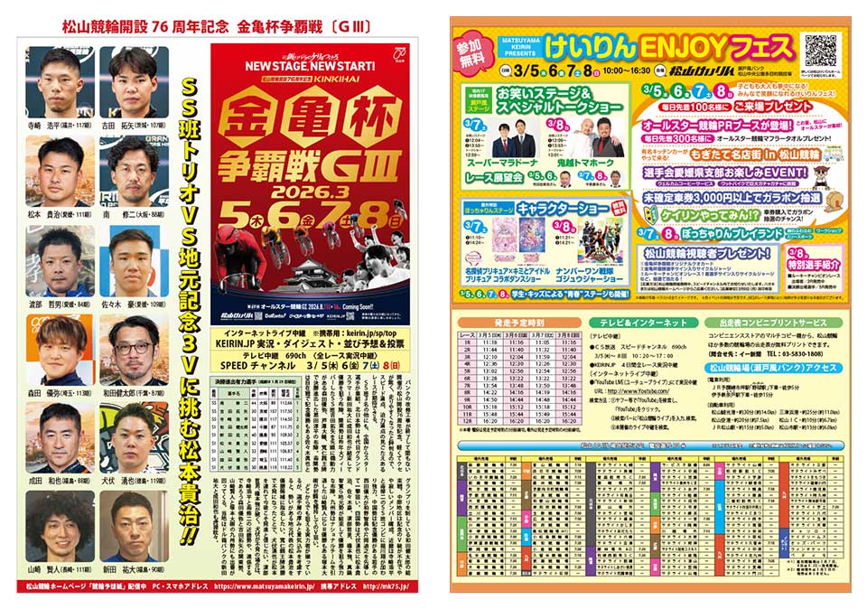 松山競輪開催期間中、スピードチャンネル内でお知らせいたします