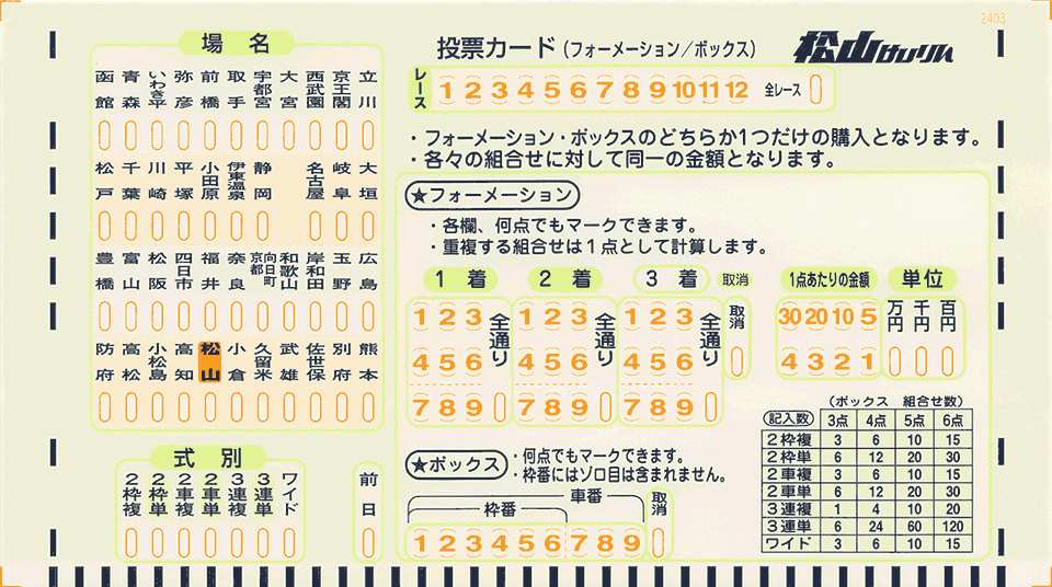 投票カードは「一般投票カード」と「フォーメーション/ボックス投票カード」の2種類があります。